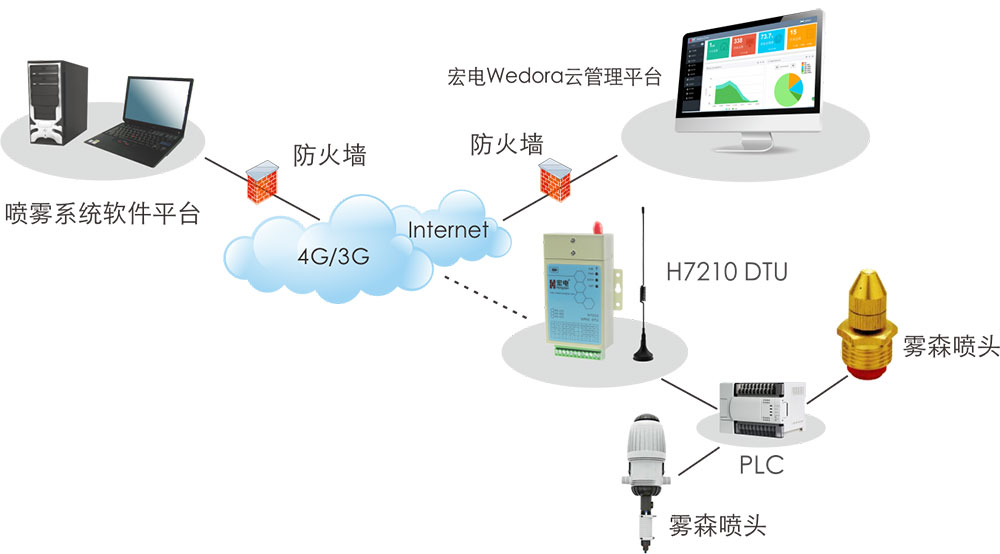 宏電作為國內(nèi)M2M和物聯(lián)網(wǎng)領(lǐng)域?qū)<遥瑸槭啦F森噴霧系統(tǒng)提供全套無線數(shù)據(jù)傳輸解決方案。對此,宏電提供H7210 DTU產(chǎn)品用于霧森噴霧系統(tǒng)搭建,宏電H7210因品質(zhì)高、性能佳、可靠、穩(wěn)定而在業(yè)界著稱。