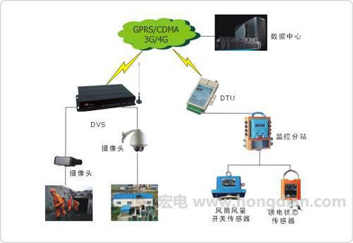 山西作為中國最大的煤炭省份,每年都有大量的煤炭事故發(fā)生。為了最大限度減少此類事件的發(fā)生,2009年,山西長治市紅山煤礦聯(lián)合深圳宏電實施基于無線數(shù)據(jù)傳輸?shù)淖詣踊刂葡到y(tǒng)。該系統(tǒng)采用宏電H7710 DTU實現(xiàn)中心控制機房對礦井、風機運行狀態(tài)數(shù)據(jù)的遠程采集和控制通信,中心控制室安裝主站服務器和工控機。井下采煤工作面放置瓦斯傳感器與模擬量采集模塊,再通過接口轉換器將RS485接口轉換成RS232接口,連接到宏電無線通信終端。通過這種連接方式,可以實現(xiàn)控制中心對井下瓦斯含量的實時監(jiān)控與報警。