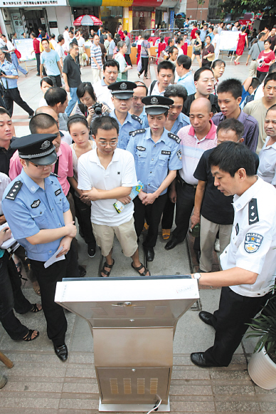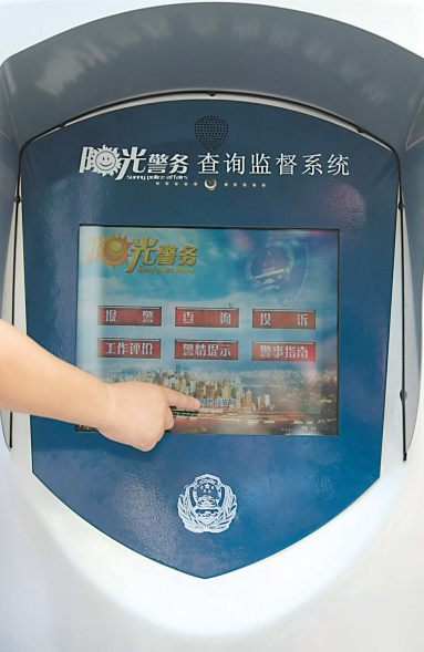 2009年7月24日,為有效解決長期困擾公安機關(guān)的立案不實、數(shù)據(jù)失真、管理失控等“老大難”問題,重慶市公安局開發(fā)并建成陽光警務(wù)查詢監(jiān)督系統(tǒng),該系統(tǒng)所用的終端機具備群眾監(jiān)督、查詢、報案、服務(wù)、考核、信息研判等功。