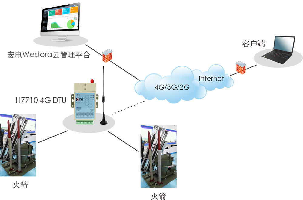 人工影響天氣火箭發(fā)射裝置有固定點(diǎn)火箭發(fā)射架和車載火箭發(fā)射架兩種,固定點(diǎn)火箭發(fā)射架主要安裝在遠(yuǎn)離城市的地方,車載火箭發(fā)射架則需要根據(jù)實(shí)際情況、旱情和冰雹預(yù)測進(jìn)行隨時(shí)機(jī)動(dòng)。火箭發(fā)射架上安裝的宏電DTU將火箭發(fā)射架的參數(shù)全部收集和回傳給數(shù)據(jù)中心,中心監(jiān)控人員通過對云層的觀察確定火箭的發(fā)射時(shí)間和發(fā)射方向,從而確保火箭彈頭可以準(zhǔn)確的到達(dá)預(yù)定云層,實(shí)現(xiàn)人工增雨的效果。宏電DTU的穩(wěn)定工作,保障了火箭發(fā)射的順利進(jìn)行,實(shí)現(xiàn)了人工增雨防雹工作,已成為國內(nèi)人工影響天氣的重要組成環(huán)節(jié)。