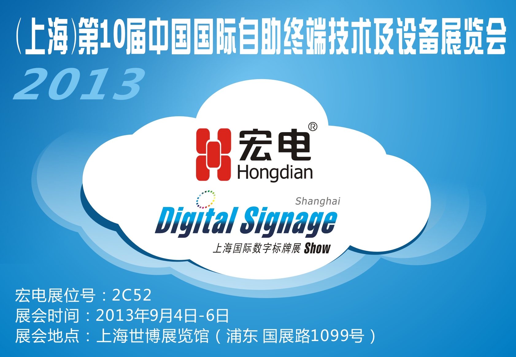 2013年中國(guó)國(guó)際自助終端技術(shù)及設(shè)備展覽會(huì)(同期上海國(guó)際數(shù)字標(biāo)牌展)于2013年9月4-6日在上海世博展覽館盛大召開(kāi)。
