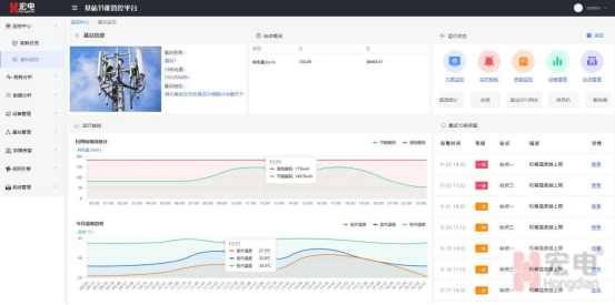 便捷的基站監(jiān)控界面:全方位展示單個(gè)基站信息包含基站位置信息、日耗電量、日用電趨勢(shì)、溫度趨勢(shì),以及常用功能的便捷跳轉(zhuǎn)。