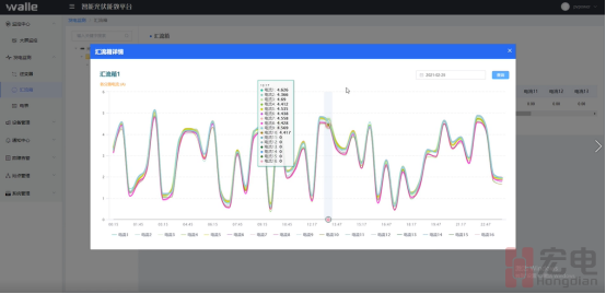 光伏組件分布監(jiān)控: 實時自動繪制光伏組件的時間功率曲線圖以及相同時間段不同光伏組件的輸出總功率,自動定位異常光伏組件。