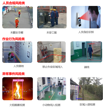 ● 智能調(diào)控:利用人工智能分析技術(shù),對(duì)實(shí)時(shí)視頻進(jìn)行人臉識(shí)別、安全帽識(shí)別、工作服檢測(cè)、人員倒伏檢測(cè)、火焰/煙霧識(shí)別、吸煙檢測(cè)、周界入侵等,聯(lián)動(dòng)控制站房?jī)?nèi)輔控裝置,進(jìn)一步提升站房智能化運(yùn)行水平。