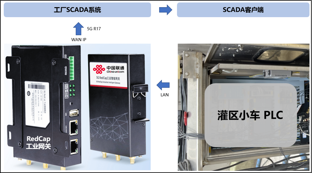 作為全球最大調味工廠,海天醬油廠擁有超80萬平方米玻璃曬池和發(fā)酵大罐,室內室外均需要開展5G應用,本次通過宏站+數字化室分+RedCap工業(yè)智能網關協(xié)同,實現(xiàn)海天調味醬油廠室內室外網絡連續(xù)覆蓋,基于RedCap工業(yè)智能網關協(xié)議解析、數采數傳、高精度B碼授時等功能,將灌區(qū)小車位置數據、設備數據、生產數據通過網關傳輸至MEC服務器進行數據存儲及處理。經測試,RedCap工業(yè)智能網關時延穩(wěn)定在30ms左右,斷電重啟時延無抖動,完全滿足海天廠內、廠外數字化生產需求,為海天灌區(qū)總調度、分中心提供數據支撐,實現(xiàn)生產優(yōu)化配置。