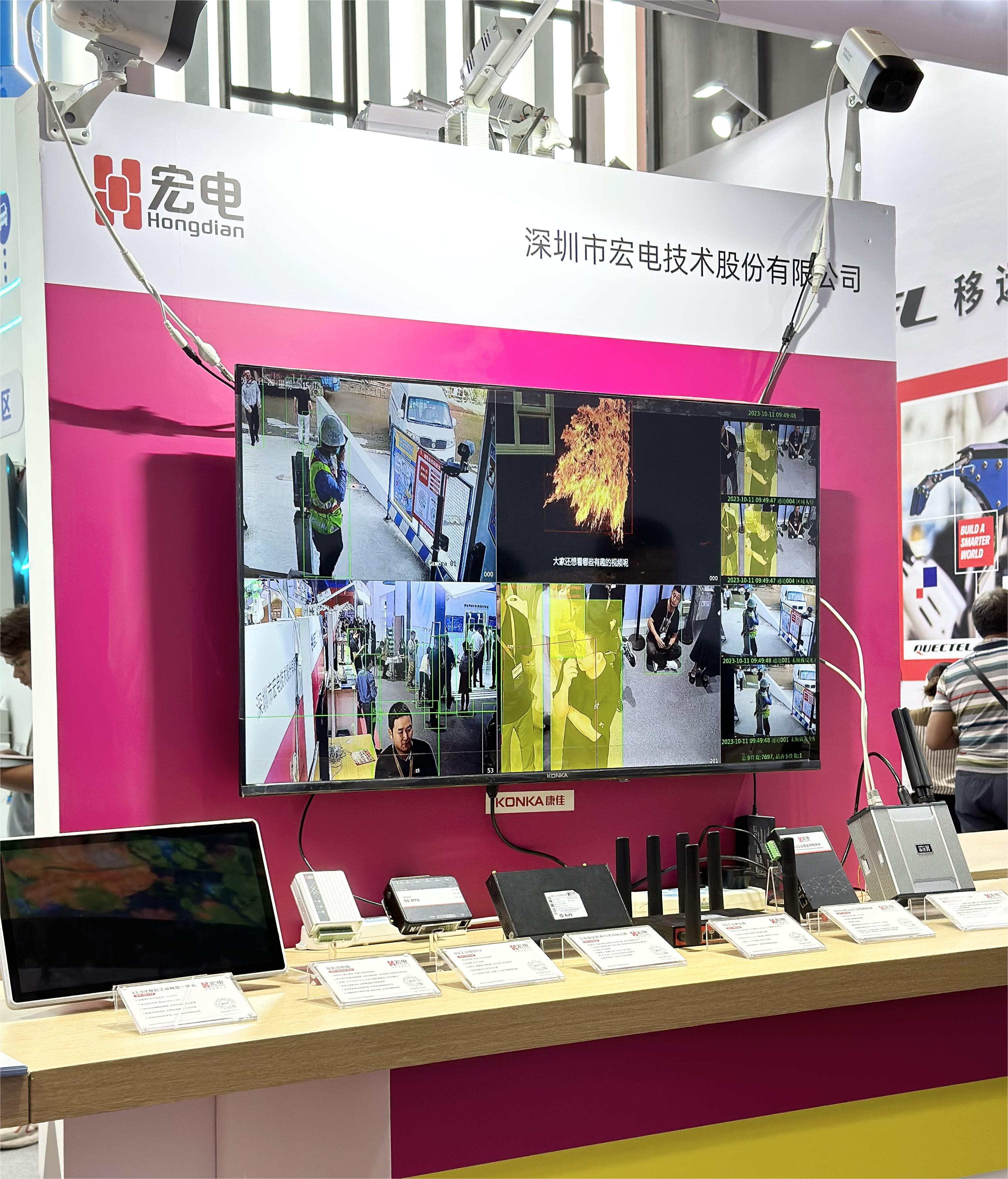 算力已成為數(shù)字經(jīng)濟(jì)時(shí)代的關(guān)鍵生產(chǎn)力,是全社會(huì)數(shù)字化、智能化轉(zhuǎn)型的重要基石。宏電股份順應(yīng)算力時(shí)代,推出AI BOX邊緣智能終端,開拓物聯(lián)網(wǎng)應(yīng)用新場(chǎng)景。并在展會(huì)現(xiàn)場(chǎng)借助AI BOX的高算力分析能力在現(xiàn)場(chǎng)搭建AI算法識(shí)別演示系統(tǒng),展示了人流量統(tǒng)計(jì)、區(qū)域入侵識(shí)別、火焰識(shí)別、跌倒識(shí)別、安全帽工衣識(shí)別等多種行業(yè)算法,探索更廣泛的AI應(yīng)用落地場(chǎng)景和解決方案。