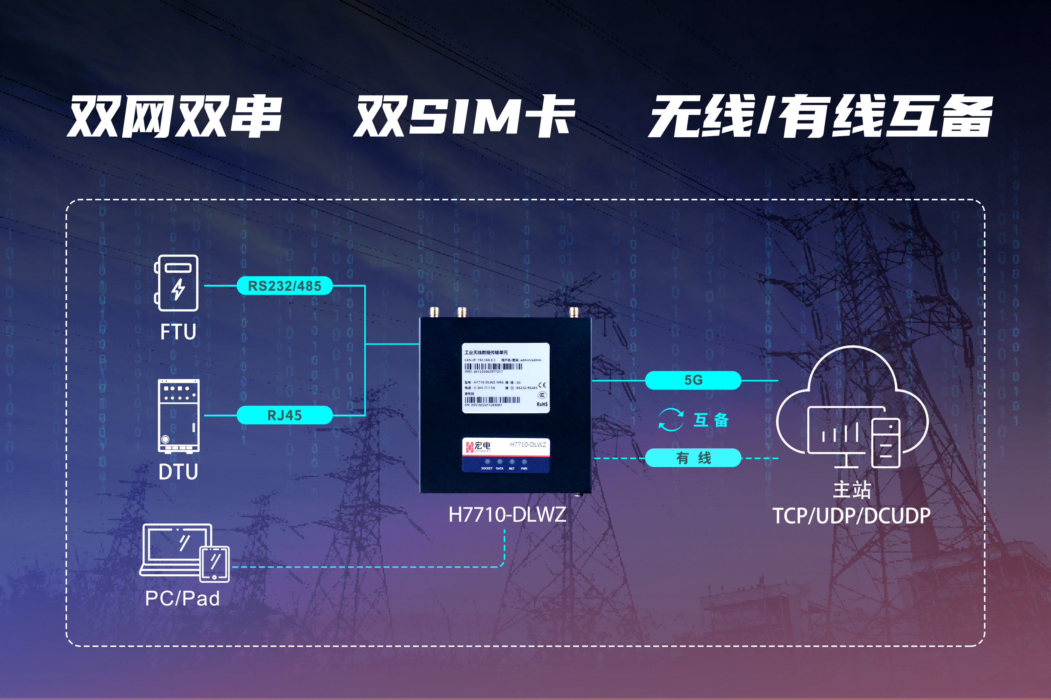 在配網(wǎng)自動(dòng)化改造與數(shù)字化轉(zhuǎn)型的雙重驅(qū)動(dòng)下,宏電股份推出全新升級版H7710-DLWZ系列5G電力DTU,聚焦配網(wǎng)通信鏈路冗余、國產(chǎn)自主可控、復(fù)雜環(huán)境適應(yīng)性三大核心需求,為配電自動(dòng)化、臺區(qū)智能運(yùn)維、分布式能源接入等場景提供高可靠通信底座。