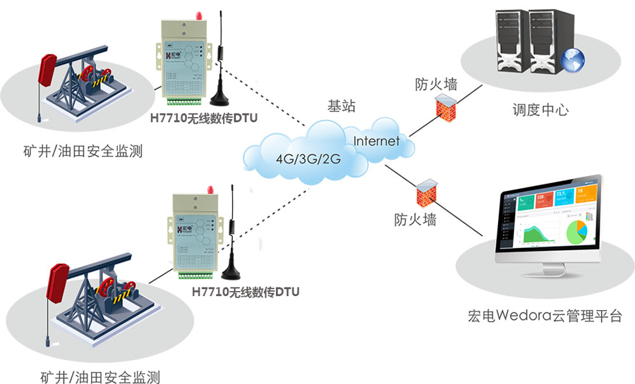 該系統(tǒng)采用宏電H7710 無線數(shù)傳DTU產(chǎn)品,具有以下功能優(yōu)勢: