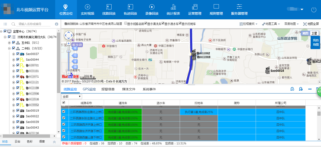 濟南環(huán)衛(wèi)部門十分重視環(huán)衛(wèi)作業(yè)的智能化管理,雖然加裝GPS定位裝置能夠查詢車輛的作業(yè)軌跡,但是部分車輛出現(xiàn)漏掃,或是清掃不干凈等情況,難以及時發(fā)現(xiàn)。為了避免環(huán)衛(wèi)作業(yè)以上問題出現(xiàn),濟南機械化清掃大隊采用宏電H3318A四合一車載視頻監(jiān)控終端,并定制個性化系統(tǒng)監(jiān)控管理平臺,通過平臺對作業(yè)線路和作業(yè)效果全程監(jiān)督,從而實現(xiàn)對環(huán)衛(wèi)作業(yè)的實時把控。
