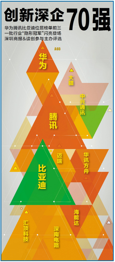 在深圳市科技創(chuàng)新委員會指導下,時代商家雜志社和深圳商報&讀創(chuàng),以及深圳市時代新經濟發(fā)展研究院今年3月共同發(fā)起“深圳創(chuàng)新企業(yè)70強”評選活動。組委會表示,深圳創(chuàng)新企業(yè)是深圳高新技術產業(yè)的脊梁,是深圳高質量發(fā)展的代名詞,通過評選不僅要表彰銳意進取的企業(yè),也要揭示深圳的創(chuàng)新密碼,總結深圳的創(chuàng)新基因。