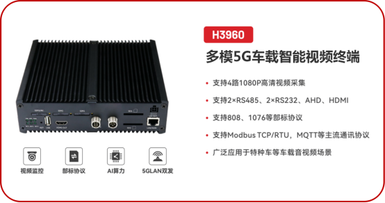 宏電多模5G車載智能視頻終端是一款集合綜合網(wǎng)關(guān)業(yè)務(wù)和車載視頻功能的一體化產(chǎn)品,通過多模5G負(fù)載均衡和帶寬綁定實(shí)現(xiàn)多路高清視頻的實(shí)時(shí)采集和傳輸,支持DSM攝像頭和DSM疲勞駕駛分析。該產(chǎn)品還可結(jié)合iScan平臺(tái)為用戶提供整體交鑰匙車載解決方案。支持2Tops或更高算力,實(shí)現(xiàn)AI邊緣計(jì)算的其他業(yè)務(wù)。基于車規(guī)級(jí)標(biāo)準(zhǔn)設(shè)計(jì),寬溫、寬壓、抗強(qiáng)電磁干擾,廣泛應(yīng)用于醫(yī)療救護(hù)車、救援車、環(huán)衛(wèi)車、礦卡等特殊行業(yè)等車載領(lǐng)域,也可應(yīng)用于智慧產(chǎn)業(yè)園區(qū)的物流穿梭車和物流卡車等車載領(lǐng)域,結(jié)合算力定制或AI盒子還可以應(yīng)用于無人車巡檢等無人駕駛領(lǐng)域。