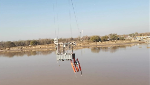 濼口水文站,無(wú)人測(cè)驗(yàn)平臺(tái)前往測(cè)流。“行走黃河”采訪(fǎng)組記者 李棟 攝