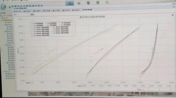 利津水文站運(yùn)用歷史數(shù)據(jù)形成的高水報(bào)汛曲線(xiàn)圖。“行走黃河”采訪(fǎng)組記者 李棟 攝