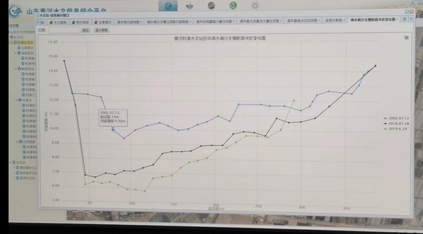 在黃委,我們了解到:1972年至1999年,28年間,黃河下游干流斷流22年,斷流長(zhǎng)度一度達(dá)700多公里。最嚴(yán)重的1997年,一年365天中,斷流長(zhǎng)達(dá)226天!直至2003年上半年,黃河來(lái)水仍屬偏枯。此外,2002年,小浪底水利樞紐開(kāi)始調(diào)水調(diào)沙,多年來(lái)已將下游河道主槽河底高程平均刷深兩米!這些,都在山東黃河水文信息綜合平臺(tái)留下了印跡。