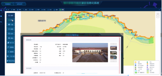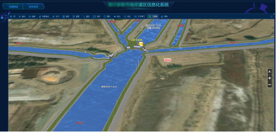 基于二三維一體化GIS技術(shù),實現(xiàn)灌區(qū)信息的綜合監(jiān)測分析(包括閘群監(jiān)控、渠道水量、土壤墑情、地下水、氣象、泵站等),能夠在三維GIS系統(tǒng)里加載符合現(xiàn)狀環(huán)境的閘群、渠道、泵房等設(shè)備設(shè)施的真三維模型、查看監(jiān)視信息以及各類信息統(tǒng)計、分析、服務(wù)等功能。