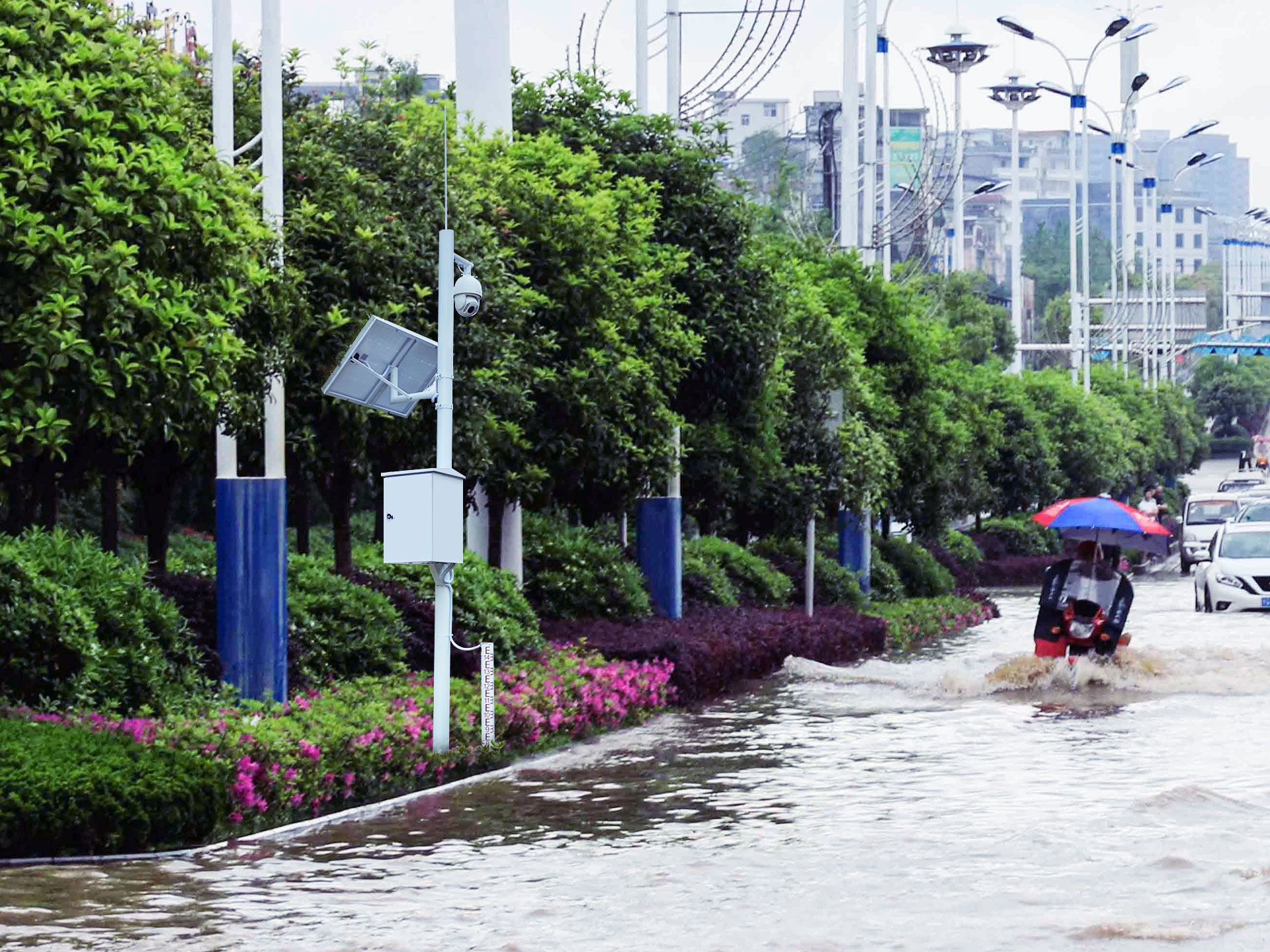 由雨量計、H1600C雷達電子水尺、聲光報警器(可選)、圖像/視頻監(jiān)控傳感器、H5110遙測終端機和電源系統(tǒng)組成。通過在下穿立交、低洼路段/區(qū)域、重點保護區(qū)域等安裝部署相關(guān)設備,針對降雨量、液位等進行實時監(jiān)測,關(guān)鍵區(qū)域可通過增加圖像監(jiān)控傳感器進行圖片抓拍對積水情況實時確認。