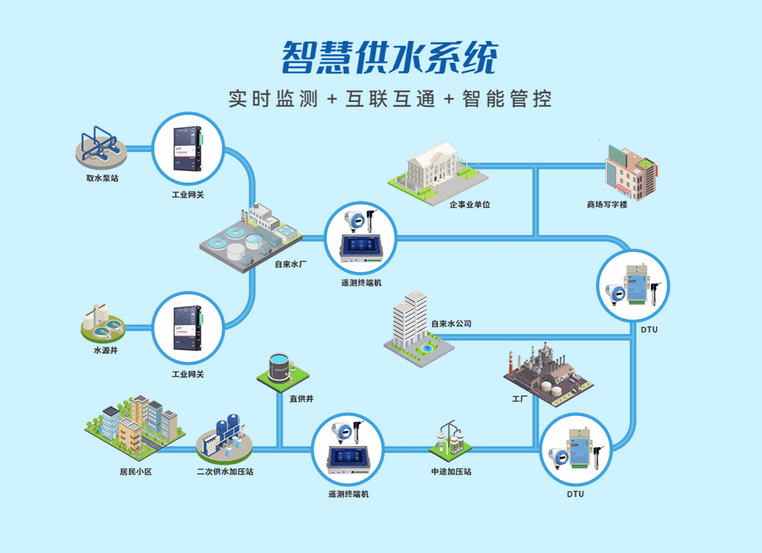 系統(tǒng)涵蓋城市供水中的水源地取水、水廠制水、管網(wǎng)輸水、加壓送水、用戶(hù)用水等各個(gè)環(huán)節(jié),實(shí)現(xiàn)全流程遠(yuǎn)程監(jiān)管和智能聯(lián)動(dòng)控制,優(yōu)化生產(chǎn)調(diào)度,保障高效供水,促進(jìn)節(jié)能降耗,降低產(chǎn)銷(xiāo)差,是水司實(shí)現(xiàn)智慧化運(yùn)營(yíng)的重要途徑。