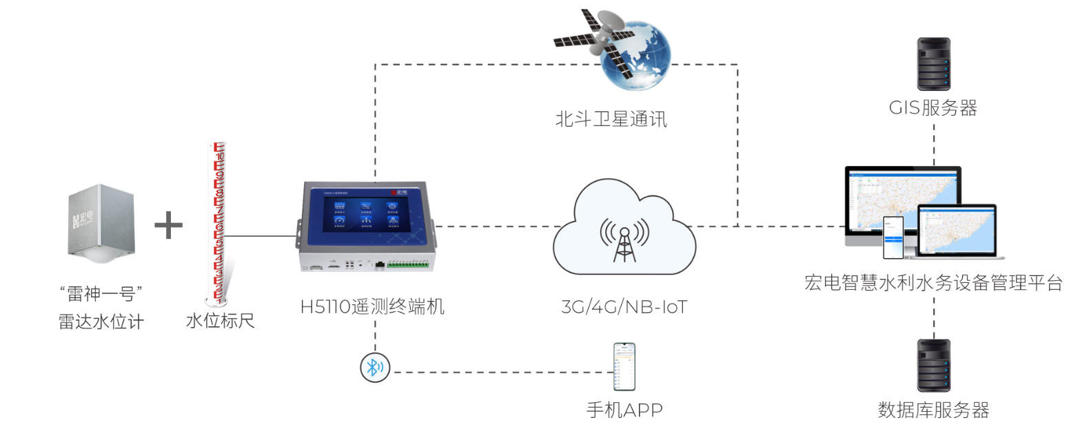 宏電H5110遙測終端機將“雷神一號”雷達水位計采集的水位數據通過4G無線網絡傳輸至監(jiān)測平臺,實現對水位數據的在線監(jiān)測與處理。