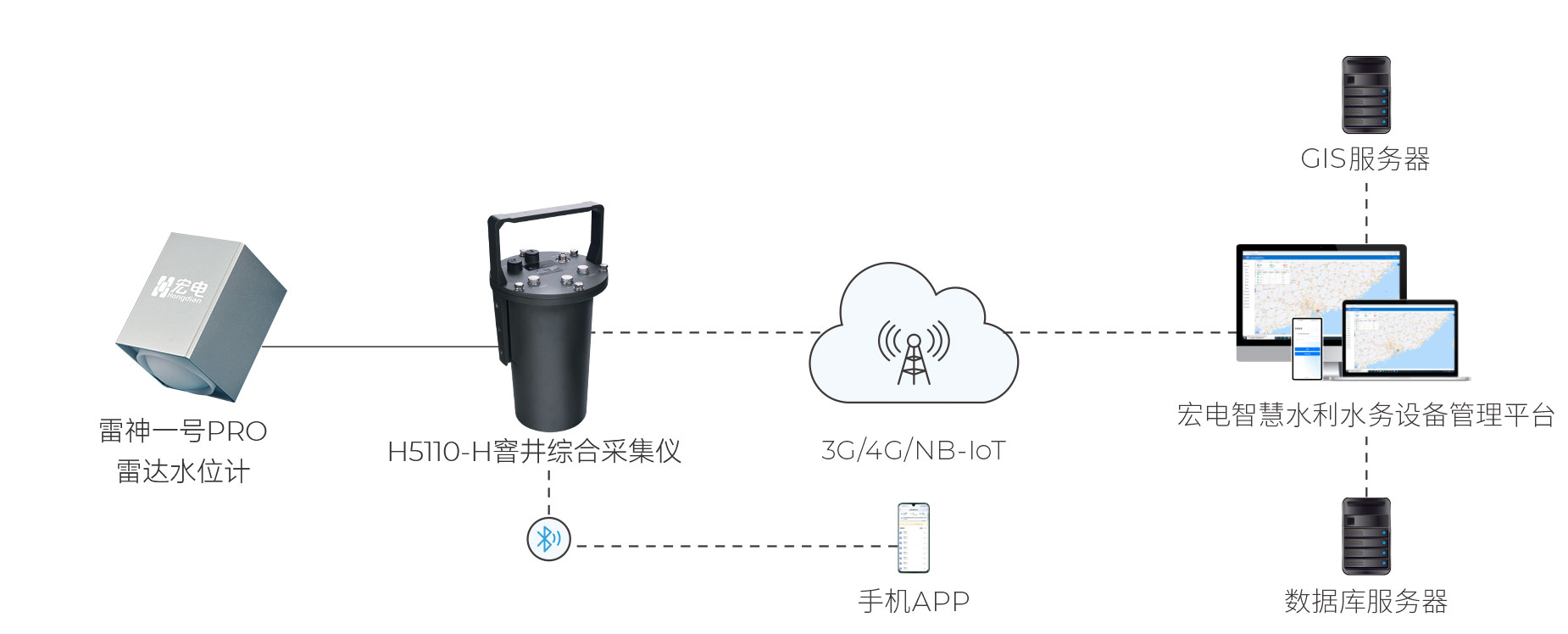 “雷神一號Pro”雷達(dá)水位計搭配H5110-H窨井綜合采集儀,即可組成窨井水位監(jiān)測站。“雷神一號Pro”雷達(dá)水位計測量井內(nèi)的水位數(shù)據(jù),H5110-H窨井綜合采集儀將數(shù)據(jù)通過無線網(wǎng)絡(luò)傳輸至宏電智慧水利水務(wù)設(shè)備管理平臺,實現(xiàn)窨井水位的在線監(jiān)測。