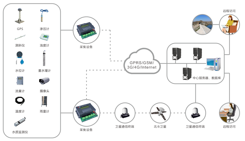 1、實時采集多種監(jiān)測數(shù)據(jù),包括地表變形、內部變形、浸潤線(滲流滲壓)、滲漏量、雨量、庫水位、流量、氣溫、水溫以及視頻圖像等數(shù)據(jù)。