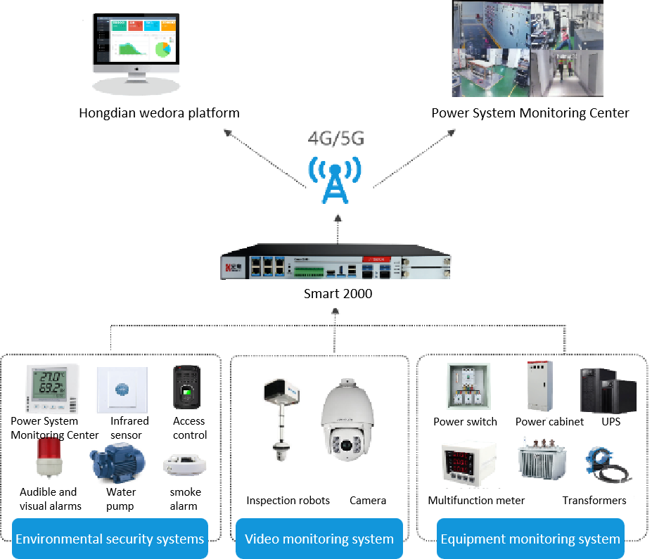 The client is a Power System Integration Enterprise. Currently, their power distribution room uses a 4G monitoring solution, but due to bandwidth limitations, it is difficult to clearly identify dashboard parameter screens, requiring manual on-site verification. Additionally, the distribution room poses a significant security risk, as unauthorized personnel may break in or perform incorrect operations. To enhance safety, environmental conditions such as fire hazards, humidity, and temperature abnormalities are monitored to enable early prevention.
