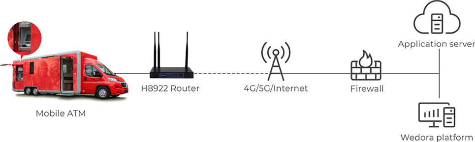 Indonesia is a developing country with a large population, the infrastructure is not perfect, and the density of ATM outlets is not enough. Therefore, major banks have launched vehicle ATMs. The project request a stable and reliable data transmission with remote monitor management.