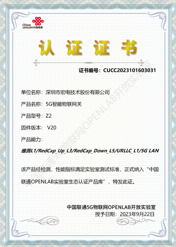 Recently, China Unicom 5G IoT OpenLab and Hongdian completed the end-to-end test verification of the 5G RedCap industrial intelligent gateway, and issued the OpenLab certification for RedCap terminals, laying a solid foundation for the scale promotion of the RedCap industry and the empowerment of the entire industry.