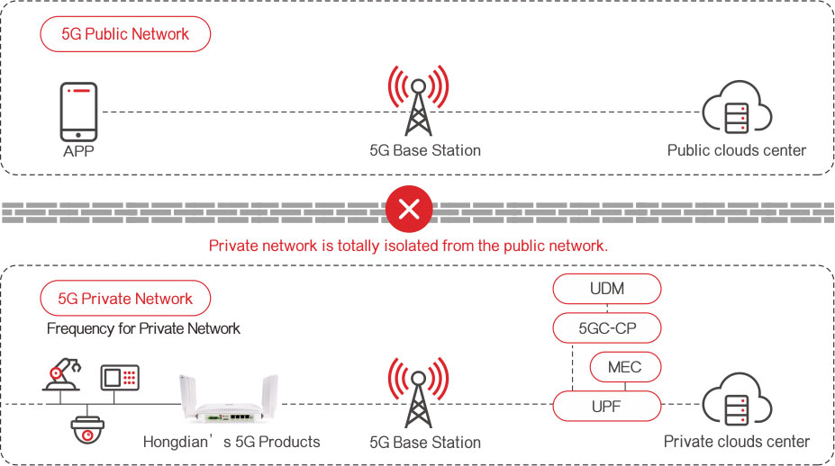 As time goes by, the evolution from 4G private networks to 5G private networks happened. 5G private networks have the advantages of large bandwidth, wide connectivity, low latency, and high security. Many application scenarios have been switched to 5G private networks. Including security monitoring, logistics and freight, and patrol inspection of unmanned aerial vehicles, etc., requires the support of 5G private network. Hongdian has launched a variety of 5G-related products as access devices for 5G private networks. Applications that were originally under 4G private networks can be quickly switched to 5G private networks.