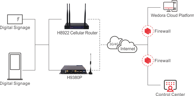 With Hongdian H9380P IPC, digital signage can get rid of fixed broadband connections and be placed anywhere. The media player is responsible for playback of marketing content, such as pictures or video, through Hongdian H9380P IPC is the device which enables the remote upload and management of such content. With 4G/5G module built-in, Hongdian H9380P is perfect for digital signage solutions. Compatible with Hongdian Wedora remote management platform, H9380P is easy to deploy and scale. The user can manage content on media players.