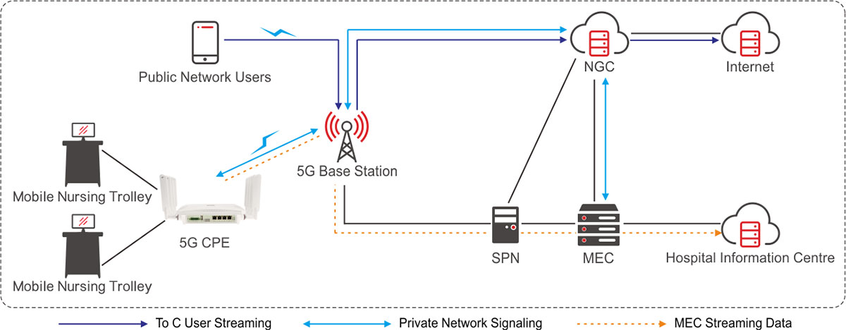 Mobile nursing is an internal system specially designed for inpatient wards of hospitals, providing intelligent and efficient mobile nursing information methods for nurses in each ward. It greatly reduces the labor intensity of nurses, significantly improves the work efficiency of nurses, standardizes nursing operations, returns to zero errors, and eliminates nurse-patient disputes. Using mobile terminals, nurses can collect patient vital signs in real time at the bedside, view the latest changes in medical orders in real time, and perfectly apply bar code functions to reduce error rates and improve work efficiency. The PC nurse workstation automatically generates nursing files and only needs to be printed, which greatly reduces the time for nurses to travel to and from the ward and workstation, and obtains patient data in real time to achieve accuracy. At the same time, the mobile nursing trolley equipped with A50M 5G intelligent industrial gateway can store a variety of medical equipment, medicines, etc., which is convenient for transportation, provides nurses with a more efficient and convenient working mode, and improves medical efficiency. At the same time, the medical care trolley can also place mobile ultrasound, defibrillation monitors and other equipment for mobile detection, bedside examination and vital sign data collection.