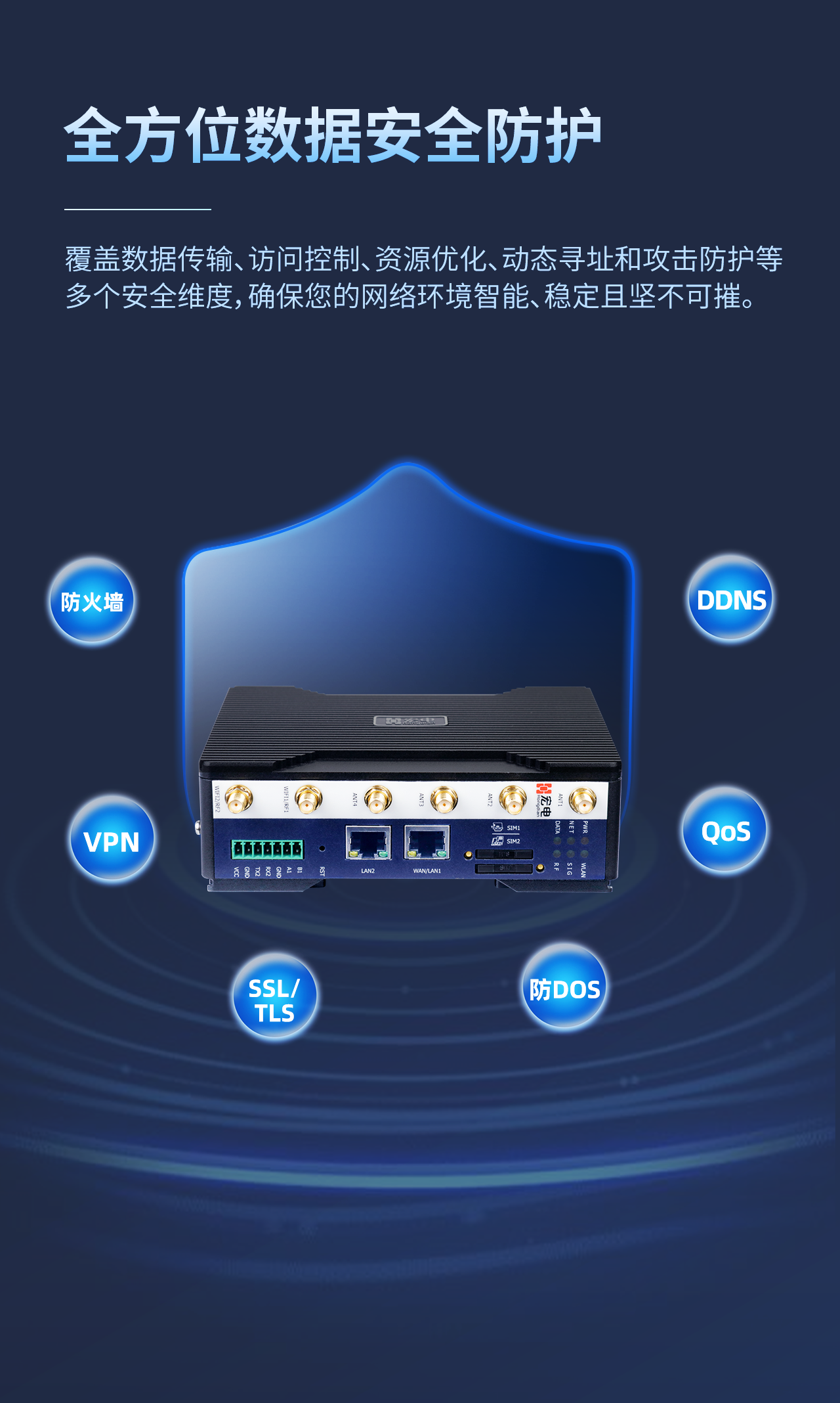 | 軟件功能 | 網(wǎng)絡(luò)接入 | 根據(jù)不同的模塊可實(shí)現(xiàn)4G/5G全網(wǎng)通,支持5G R16、R17特性 支持APN、VPDN撥號(hào),支持CHAP、PAP接入認(rèn)證 WAN口靜態(tài)IP/DHCP/PPPoE撥號(hào) DHCP自動(dòng)撥號(hào)、按需撥號(hào) 支持WiFi功能,WiFi AP/station客戶(hù)端功能,支持IEEE802.11b/g/n/ax, 支持2.4G和5.8G雙頻WiFi,支持WPAWPA2認(rèn) 證,TKIP/AES加密,支持隱藏SSID WiFi到WiFi最高速率945Mbps、可接入64個(gè)客戶(hù)端 |