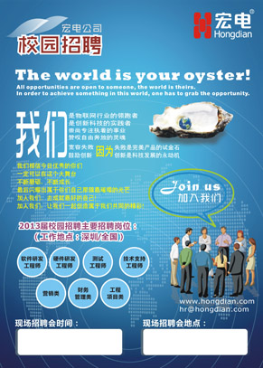 宏電2013屆校園招聘啟動通知,加入我們,讓我們一起創(chuàng)造屬于我們共同的精彩!