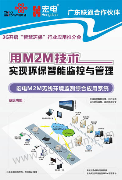 作為廣東聯(lián)通戰(zhàn)略合作伙伴,深圳市宏電技術(shù)股份有限公司受邀參加了此次推介會(huì),現(xiàn)場(chǎng)展示了宏電公司自主研發(fā)和全面推廣的3G無(wú)線環(huán)保監(jiān)測(cè)與管理系列產(chǎn)品和一攬子解決方案。基于宏電M2M產(chǎn)品在環(huán)保領(lǐng)域應(yīng)用的成功經(jīng)驗(yàn),宏電公司正在積極響應(yīng)政府號(hào)召推廣環(huán)保物聯(lián)網(wǎng)概念。宏電M2M無(wú)線環(huán)境監(jiān)測(cè)綜合應(yīng)用系統(tǒng)是基于移動(dòng)數(shù)據(jù)傳輸平臺(tái)實(shí)現(xiàn)環(huán)境信息數(shù)據(jù)采集、傳輸與管理應(yīng)用的物聯(lián)網(wǎng)環(huán)保行業(yè)整體解決方案,它以宏電無(wú)線環(huán)境監(jiān)測(cè)系統(tǒng)為管理平臺(tái),并借助運(yùn)營(yíng)商無(wú)線網(wǎng)絡(luò)通道,對(duì)監(jiān)測(cè)數(shù)據(jù)進(jìn)行傳輸、處理和管理。系統(tǒng)具備了環(huán)境監(jiān)測(cè)數(shù)據(jù)采集、治污設(shè)施運(yùn)行狀況監(jiān)控、監(jiān)測(cè)聯(lián)動(dòng)報(bào)警、環(huán)保監(jiān)測(cè)信息發(fā)布、環(huán)保知識(shí)宣傳、突發(fā)應(yīng)急事件信息插播等功能。目前系統(tǒng)已在重點(diǎn)污染實(shí)時(shí)監(jiān)測(cè)、城市空氣質(zhì)量自動(dòng)監(jiān)測(cè)、小區(qū)噪聲在線監(jiān)測(cè)、自然保護(hù)區(qū)環(huán)境質(zhì)量監(jiān)測(cè)等細(xì)分領(lǐng)域得到廣泛應(yīng)用。