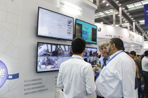 在車聯(lián)網(wǎng)監(jiān)控項目展示區(qū),宏電公司現(xiàn)場展示了城市公交、長途客運、校車、物流車輛等項目案例,實時操作并演示了功能全面而強大的車聯(lián)網(wǎng)綜合管理平臺,一套平臺就能夠?qū)崿F(xiàn)車載視頻監(jiān)控、車載實時定位、軌跡回放管理、調(diào)度管理等功能,采取層級架構(gòu),組件式設(shè)計,快速滿足各行業(yè)定制應用需求。