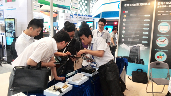 宏電展位上客戶競相體驗4G WiFi廣告路由器