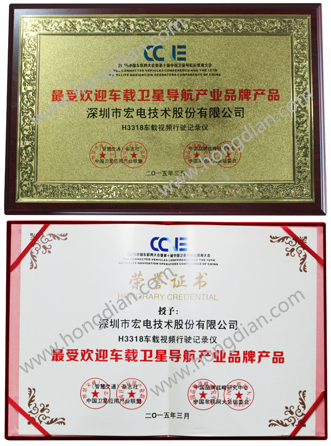 28日晚,大會(huì)同期舉辦了“2015中國(guó)車聯(lián)網(wǎng)大會(huì)頒獎(jiǎng)典禮”,主辦方為本年度優(yōu)秀的衛(wèi)星導(dǎo)航運(yùn)營(yíng)商、車聯(lián)網(wǎng)產(chǎn)品供應(yīng)商及產(chǎn)品頒發(fā)了榮譽(yù)證書(shū)。宏電H3318車載視頻行駛記錄儀憑借優(yōu)秀的性能和高標(biāo)準(zhǔn)的品質(zhì)要求,經(jīng)過(guò)層層角逐獲得“最受歡迎車載衛(wèi)星導(dǎo)航產(chǎn)業(yè)品牌產(chǎn)品”獎(jiǎng)。