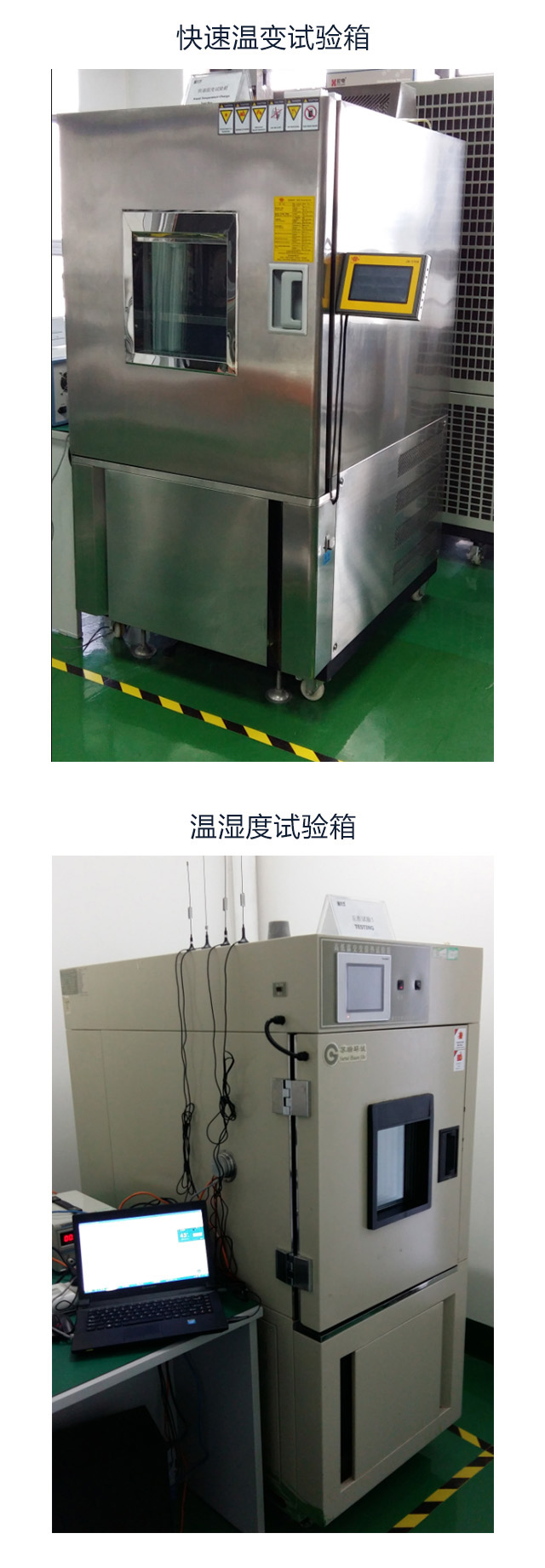 模擬測試產(chǎn)品在高溫、低溫、濕熱、干冷等各種環(huán)境氣候條件下的環(huán)境適應(yīng)性,來檢測產(chǎn)品各種電子元氣件在高低溫或濕熱環(huán)境下的各項性能指標。可測試溫度范圍:--60℃~+100℃,濕度范圍:30~98%R·H。