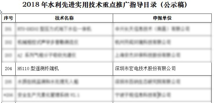 近日,水利部科技推廣中心公布了《2018年水利先進(jìn)實(shí)用技術(shù)重點(diǎn)推廣指導(dǎo)目錄》,包括中國水利水電科學(xué)研究院、南京南瑞、四川大學(xué)等單位在內(nèi)的216項(xiàng)先進(jìn)實(shí)用技術(shù)入選,深圳宏電自主研發(fā)的產(chǎn)品H5110遙測終端機(jī)憑借“科學(xué)的技術(shù)原理、先進(jìn)有效的技術(shù)性能指標(biāo)、合理的成本價(jià)格和良好的應(yīng)用效益”等優(yōu)勢位列其中。