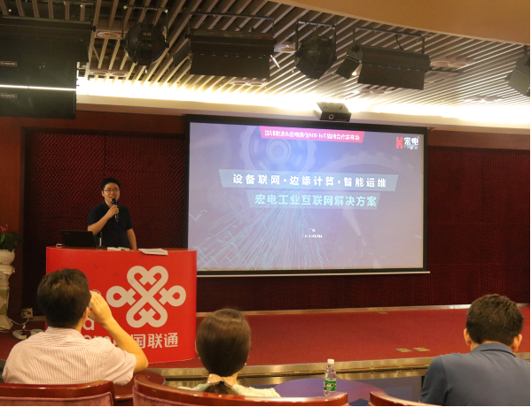宏電股份銷售總監(jiān)劉秋勇致辭中分享NB-IOT低功耗廣域網(wǎng)作為近兩年才開始進(jìn)入大眾視野的物聯(lián)網(wǎng)技術(shù),其規(guī)模化商用勢(shì)必能有力促進(jìn)物聯(lián)網(wǎng)產(chǎn)業(yè)的爆發(fā)性增長。宏電股份公司在國內(nèi)最早基于移動(dòng)通信技術(shù)自主研發(fā)M2M通信產(chǎn)品并針對(duì)行業(yè)客戶提供快速定制的應(yīng)用級(jí)解決方案,在這個(gè)領(lǐng)域耕耘了20年,擁有融合物聯(lián)網(wǎng)、云計(jì)算、大數(shù)據(jù)、邊緣計(jì)算、AI等各種信息技術(shù)與行業(yè)專有技術(shù),提供終端、平臺(tái)、應(yīng)用定制一站式物聯(lián)網(wǎng)產(chǎn)品與服務(wù)的業(yè)務(wù)能力,中國聯(lián)通作為宏電重要合作伙伴,將基于各自的產(chǎn)品業(yè)務(wù)優(yōu)勢(shì)共同發(fā)力布局物聯(lián)網(wǎng)。