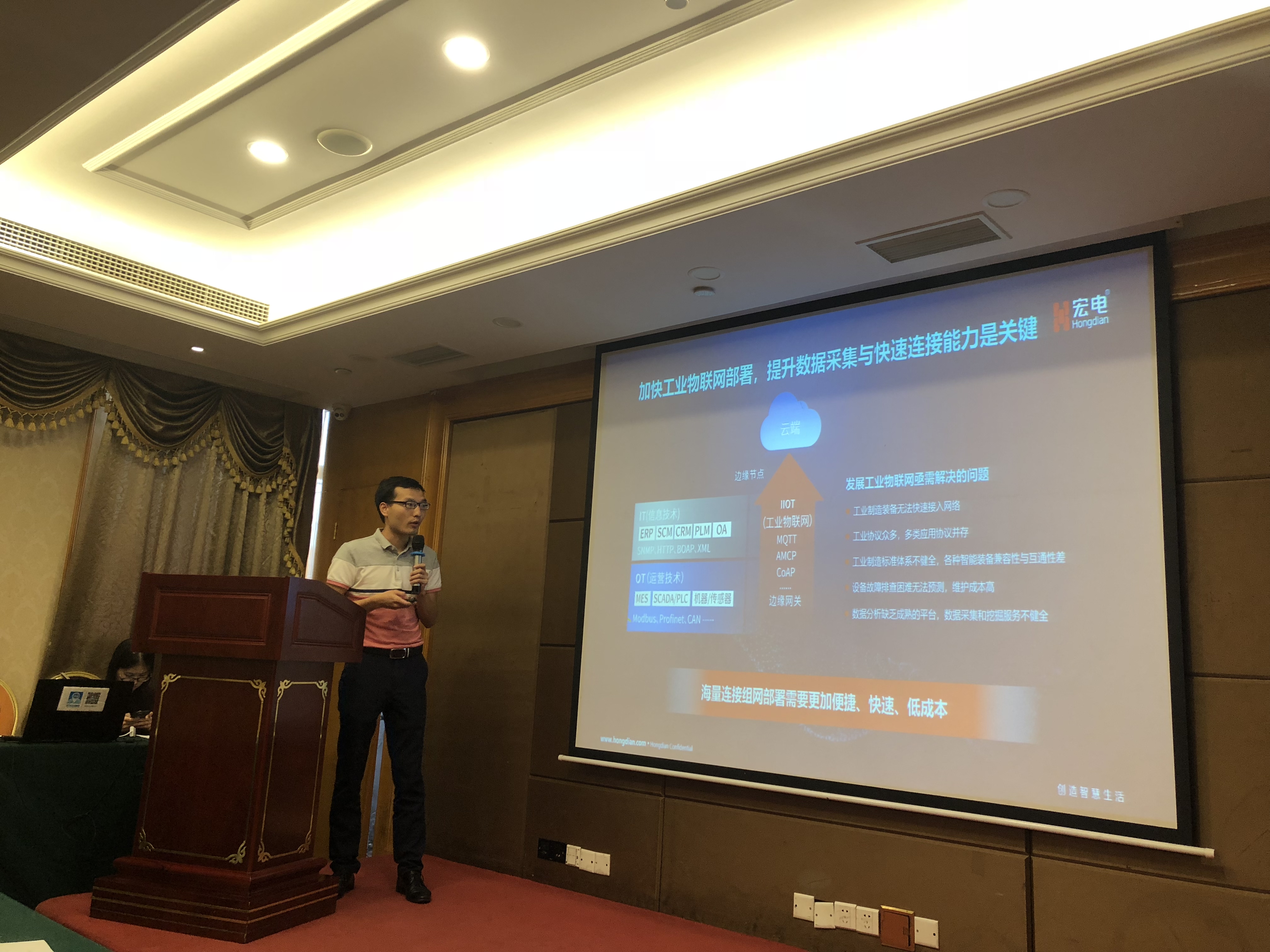授課現(xiàn)場中,宏電工業(yè)互聯(lián)網(wǎng)產(chǎn)品專家從物聯(lián)網(wǎng)感知層、網(wǎng)絡(luò)層、應(yīng)用層方面分享工業(yè)物聯(lián)網(wǎng)發(fā)展過程中存在的問題,指出智能制造升級下提升數(shù)據(jù)采集與快速連接能力是關(guān)鍵,海量連接組網(wǎng)部署需要更加便捷、快速、低成本方案,宏電面對制造業(yè)各種復(fù)雜的工業(yè)場景,整合邊緣計算、無線通信與云計算技術(shù),提供設(shè)備聯(lián)網(wǎng).邊緣計算.智能運維工業(yè)物聯(lián)網(wǎng)端云一體解決方案,通過連接IT系統(tǒng)和OT系統(tǒng),打造自身工業(yè)物聯(lián)網(wǎng)解決方案能力,助力工業(yè)客戶提升制造效率,優(yōu)化工業(yè)生產(chǎn)資源,激發(fā)行業(yè)應(yīng)用創(chuàng)新。
