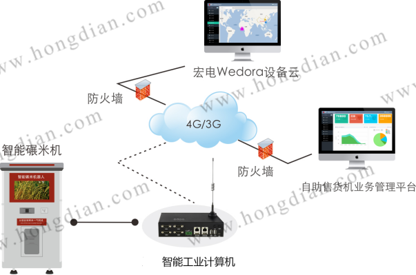 宏電針對自助碾米機(jī)運(yùn)營需求,推出自助碾米機(jī)物聯(lián)網(wǎng)無線聯(lián)網(wǎng)控制系統(tǒng),提供集無線通信與智能控制于一體的高性能安卓智能工業(yè)計算機(jī)H9380,安裝在自助碾米機(jī)內(nèi)部,為碾米機(jī)提供4G高速無線網(wǎng)絡(luò),主要實現(xiàn)人機(jī)操作、下發(fā)和上傳指令、控制各部件正常運(yùn)轉(zhuǎn),前后臺數(shù)據(jù)在云端實時同步,消費(fèi)者可以在手機(jī)上查詢倉儲、庫存、交易信息、結(jié)算等數(shù)據(jù),同時可實現(xiàn)互動顯示屏廣告遠(yuǎn)程更換,視頻遠(yuǎn)程監(jiān)控管理。