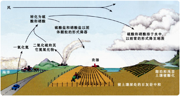 酸雨行程及影響示意圖