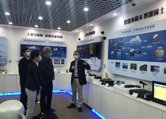 左總為區政協領導介紹宏電股份的城市洪澇監測預警決策平臺