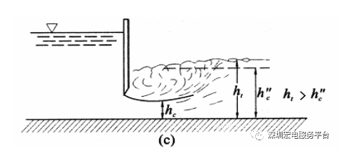 當ht > hc”時,水躍發生在收縮斷面上游,為閘孔淹沒出流。