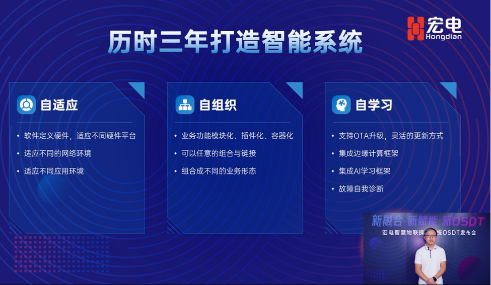 “宏電OSDT物聯(lián)網(wǎng)智能操作系統(tǒng)的發(fā)布,創(chuàng)新性地提出軟件定義終端的理念,融合了成熟的計(jì)算機(jī)、物聯(lián)網(wǎng)、通信技術(shù),同時(shí)集成了新一代邊緣計(jì)算、AI智能及容器技術(shù),為智能終端插上了翅膀,是構(gòu)建智能物聯(lián)生態(tài)體系的關(guān)鍵技術(shù)”,大會(huì)的最后宏電總工程師郭澤辰指出OSDT操作系統(tǒng)對(duì)于賦能行業(yè)具有重大意義。宏電作為物聯(lián)網(wǎng)自主研發(fā)和技術(shù)創(chuàng)新企業(yè),未來(lái)將持續(xù)發(fā)揮行業(yè)龍頭效應(yīng),助推物聯(lián)網(wǎng)+新基建快速發(fā)展。