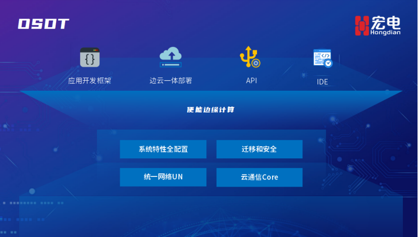 產(chǎn)品發(fā)布環(huán)節(jié),劉文強(qiáng)首先為大家詮釋了OSDT的含義:Open Software Define Terminal,行業(yè)率先提出“開(kāi)放式軟件定義終端”的理念,而后從OSDT的整體架構(gòu)介紹其核心能力,OSDT設(shè)計(jì)有四大基座,分別是“系統(tǒng)特性全配置”、“遷移和安全”、“統(tǒng)一網(wǎng)絡(luò)”、“云通信”,在此四大基座上全面使能邊緣計(jì)算,使邊緣計(jì)算應(yīng)用快速地開(kāi)發(fā)和部署。目前宏電智慧物聯(lián)操作系統(tǒng)OSDT已成功申請(qǐng)到商標(biāo)和專利保護(hù)。