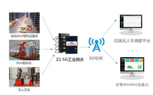 工廠智能物流場景主要包括線邊物流和智能倉儲。線邊物流是指從生產線的上游工位到下游工位、從工位到緩沖倉、從集中倉庫到線邊倉,實現物料定時定點定量 配送。智能倉儲是指通過物聯網、云計算和機電一體化等技術共同實現智慧物流,降低倉儲成本、提升運營效率、提升倉儲管理能力。通過部署 宏電5G工業(yè)網關等設備可以實現廠區(qū)內自動導航車輛(AGV)、自動移動機器人(AMR)、叉車、機械臂和無人倉視覺系統(tǒng)的 5G 網絡接入,部署智能物流調度系統(tǒng),結合 5G MEC+超寬帶(UWB)室內高精定 位技術,可以實現物流終端控制、商品入庫存儲、搬運、分揀等作業(yè)全流程自動化、智能化。