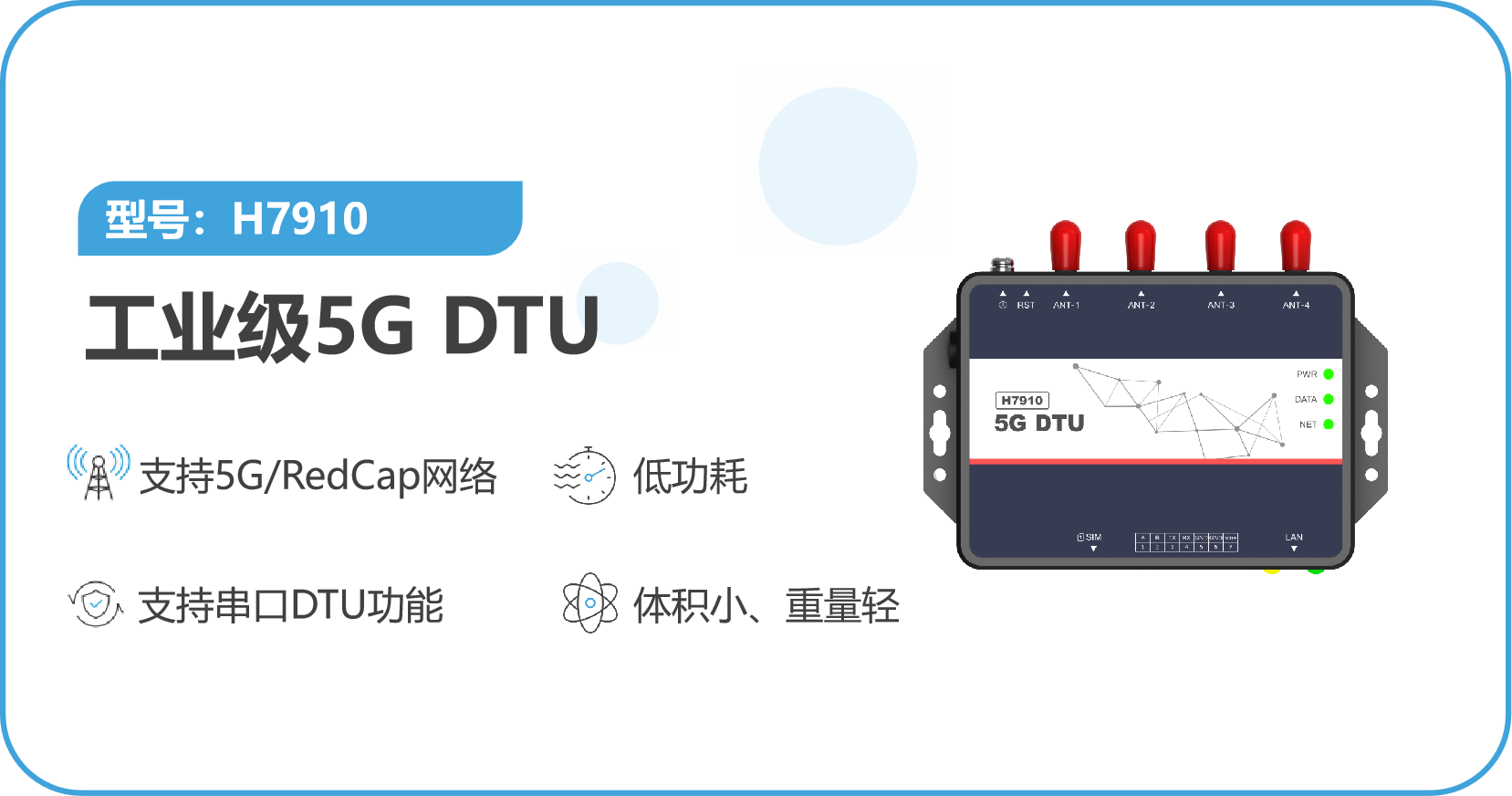 宏電5G工業(yè) DTU基于高性能硬件平臺(tái)開(kāi)發(fā),支持5G SA/NSA 組網(wǎng),向下兼容4G/3G 網(wǎng)絡(luò)制式,組網(wǎng)更加便捷;接口方面其滿(mǎn)足千兆網(wǎng)口、串口、無(wú)線(xiàn) GPS等接口需求;產(chǎn)品采用全新工業(yè)級(jí)設(shè)計(jì),更小體積,更輕重量,更好適裝性,宏電5G工業(yè)DTU可面向各種行業(yè)小型化、嵌入式5G 應(yīng)用場(chǎng)景。