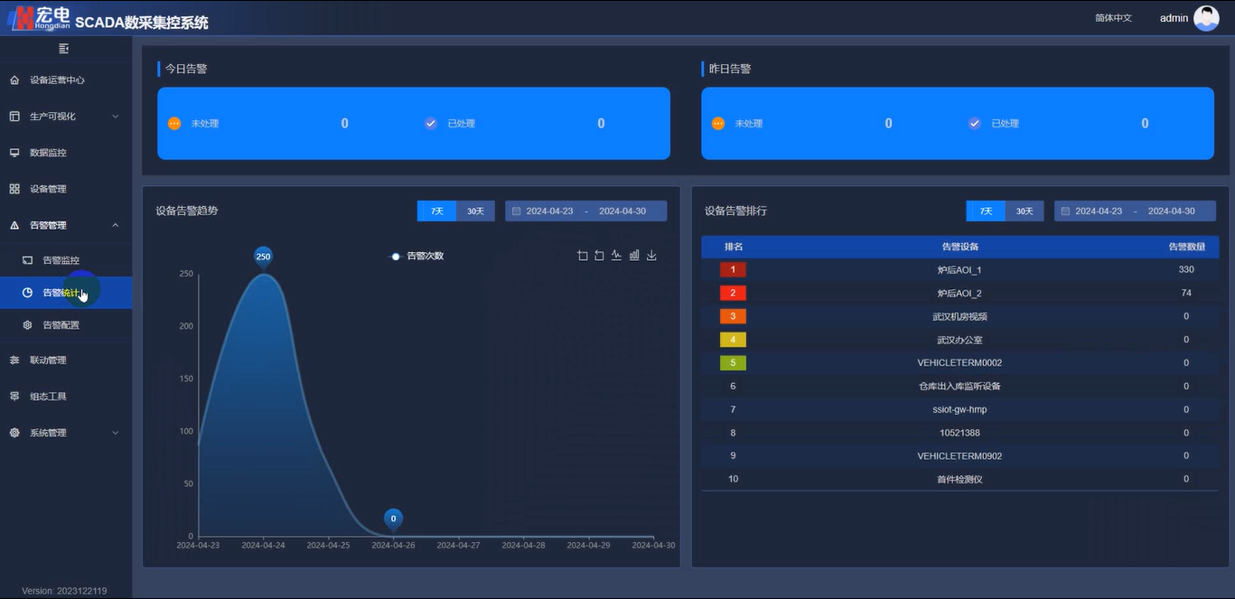 對(duì)系統(tǒng)中各種設(shè)備的異常情況進(jìn)行設(shè)置,當(dāng)設(shè)備發(fā)生異常時(shí),當(dāng)系統(tǒng)發(fā)生異常情況時(shí),宏電SCADA數(shù)采集控系統(tǒng)能夠自動(dòng)生成警報(bào),通過短信、郵件等多種通知方式向相關(guān)人員發(fā)送報(bào)警信息,以便及時(shí)采取措施。