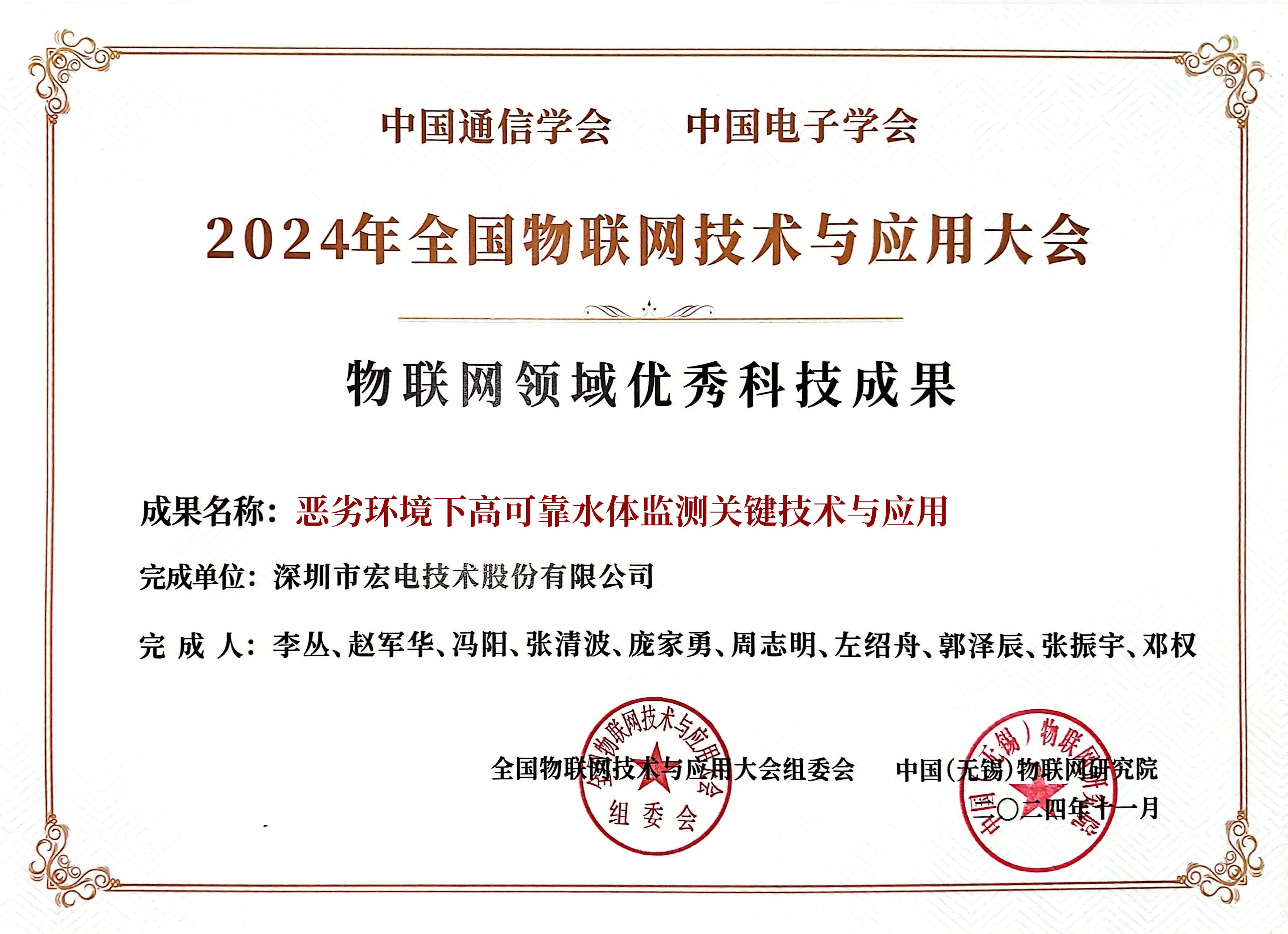開幕式上,“2024年度物聯(lián)網(wǎng)領(lǐng)域十大科技進(jìn)展”正式發(fā)布。宏電股份申報(bào)項(xiàng)目“惡劣環(huán)境下高可靠水體監(jiān)測關(guān)鍵技術(shù)與應(yīng)用”榮獲“2024年度物聯(lián)網(wǎng)領(lǐng)域優(yōu)秀科技成果”獎(jiǎng)項(xiàng)。